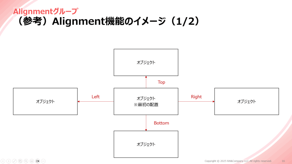 選択した複数のオブジェクトを水平方向に整列
