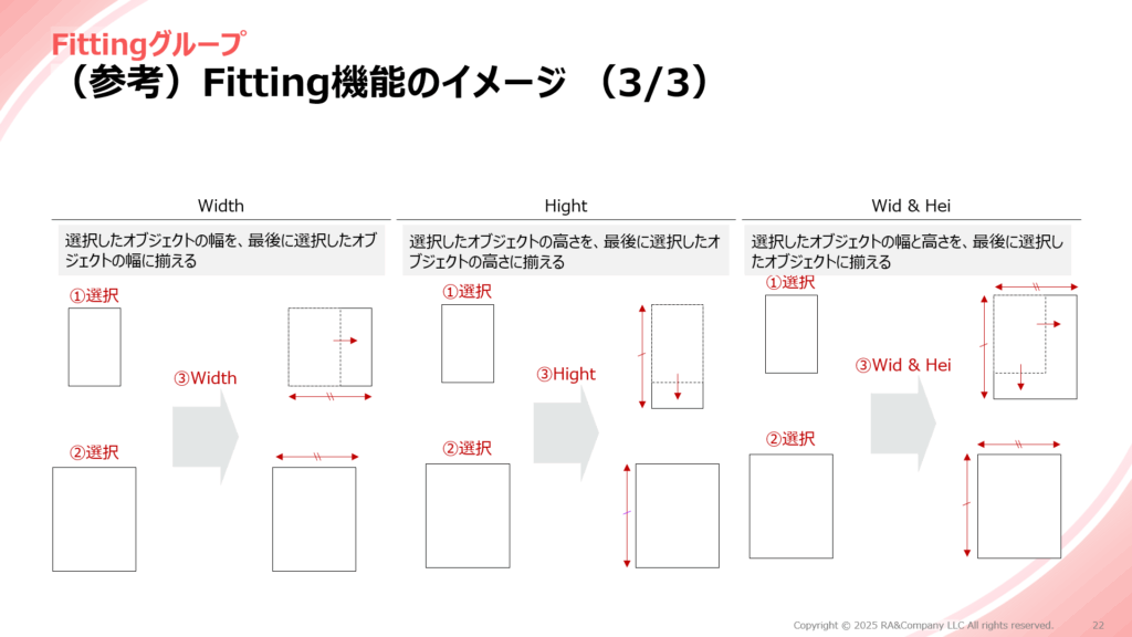 選択したオブジェクトの高さと幅を、短い方に合わせて設定