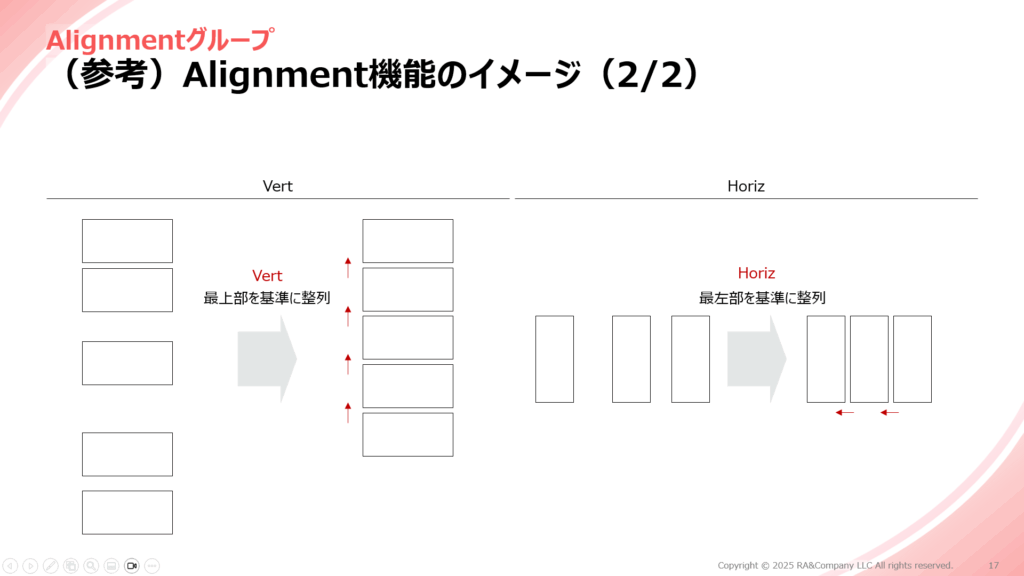 選択した複数のオブジェクトを垂直方向に整列