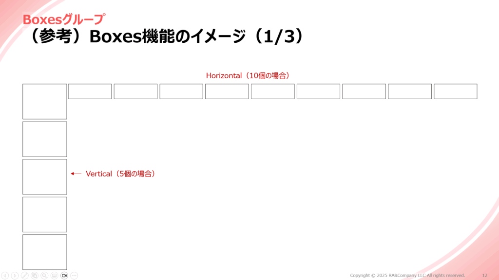 水平方向に任意の数の箱を作成