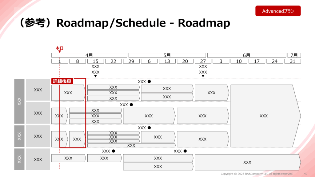 プロジェクトのロードマップを表現するスライドを作成